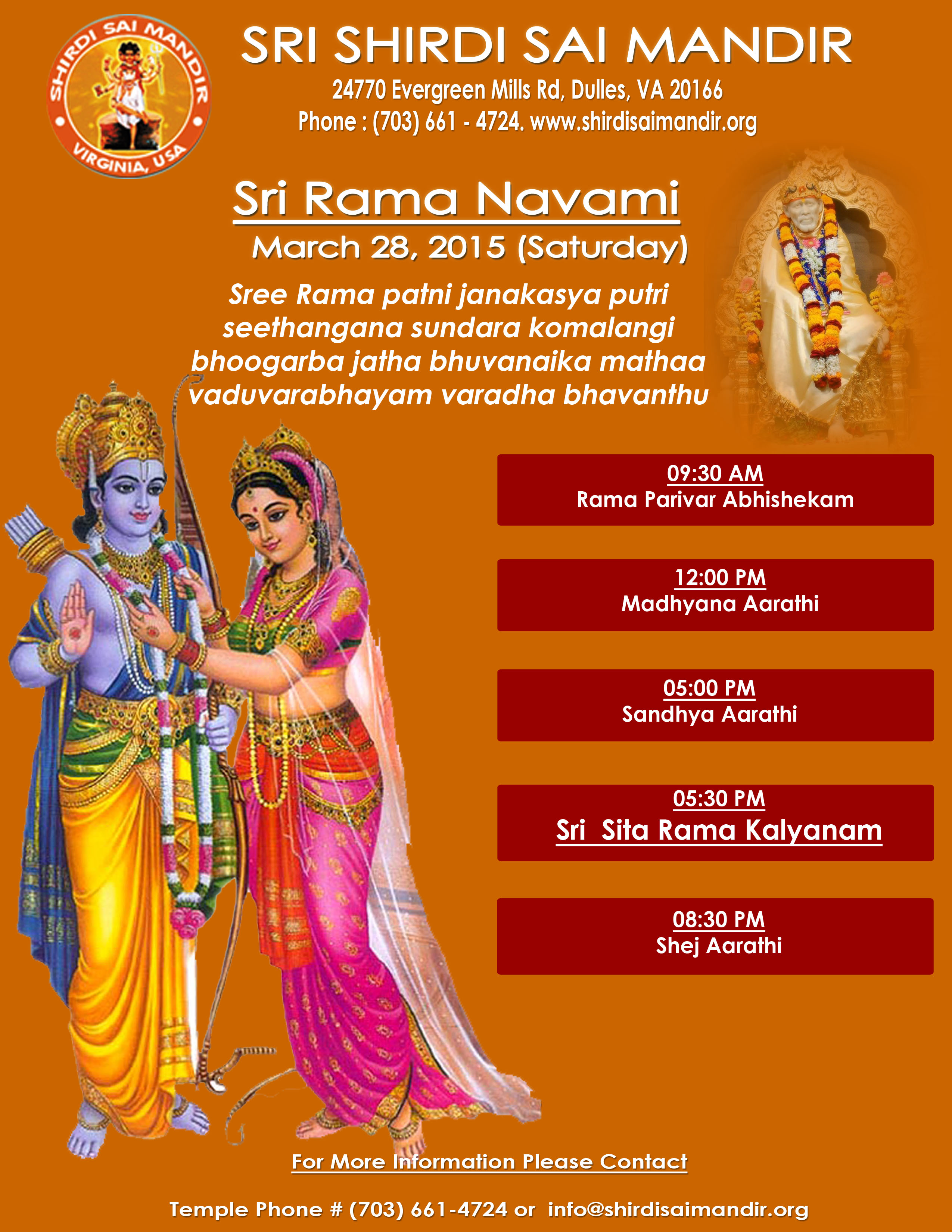 Shirdi Sai Mandir, VA requests all devotees to attend and witness Sri Sita Rama Kalyanam